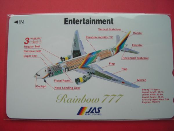 - 日本エアシステム JAS レインボー777 未使用テレカ