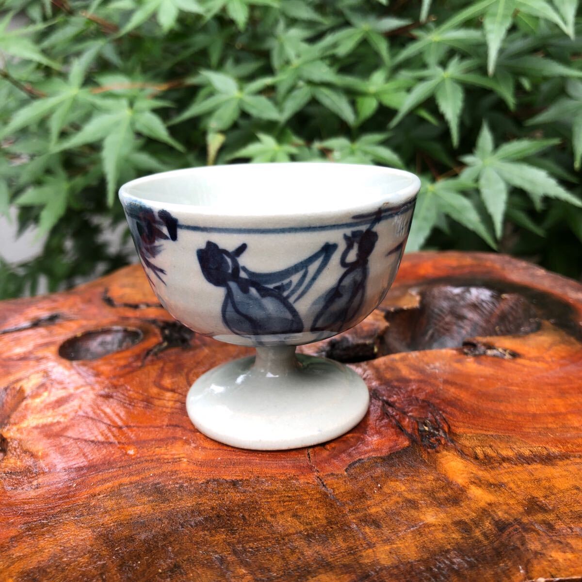 - 美濃焼 染付 高台 杯★猪口 盃 馬上 酒器 晩酌 ぐい呑 古民家 粋 禅 竹 笹 賢者 風雅 膳 風流 唐人 風情 数奇 侘び寂び 吉祥 縁起 伝統工芸