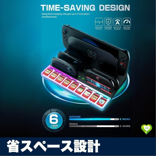 > 【省スペース設計】Switch2 Joy-Con充電スタンド 多機能 収納型 9枚対応 放熱 安定 USB付 RGBライト ゲーミング 人気 おすすめ