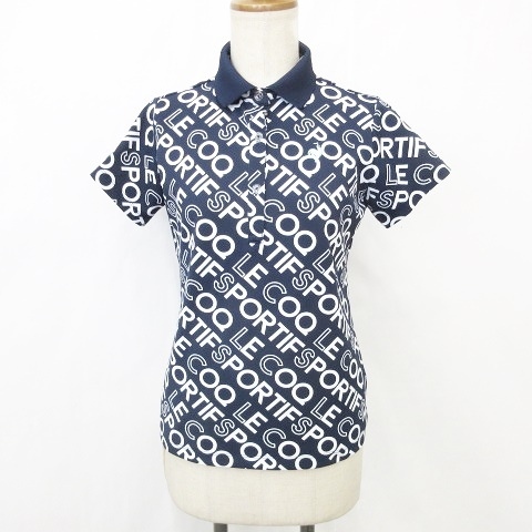 - ルコックスポルティフ le coq sportif ポロシャツ ゴルフ 半袖 速乾 ロゴ 紺 白 ネイビー ホワイト M レディース