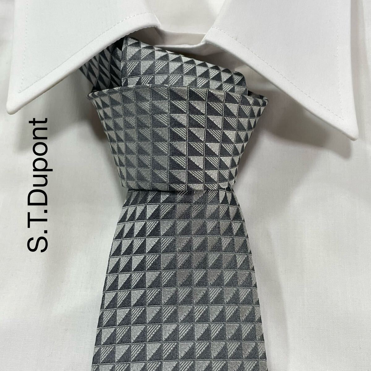 - S.T.Dupont エステーデュポン パターン柄 ジャガード シルク ネクタイ イタリア製 グレー TG2362