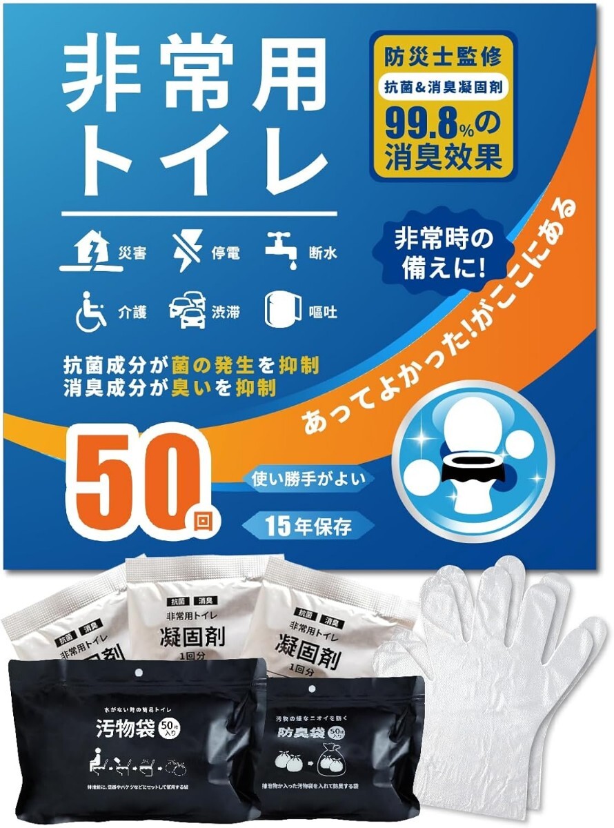 - 簡易トイレ 50回分|大容量2kg 専用掛け穴付き 未開封証明シール 長期備蓄用防災セット非常用トイレは本当に便利です 防災グッズ 災害用
