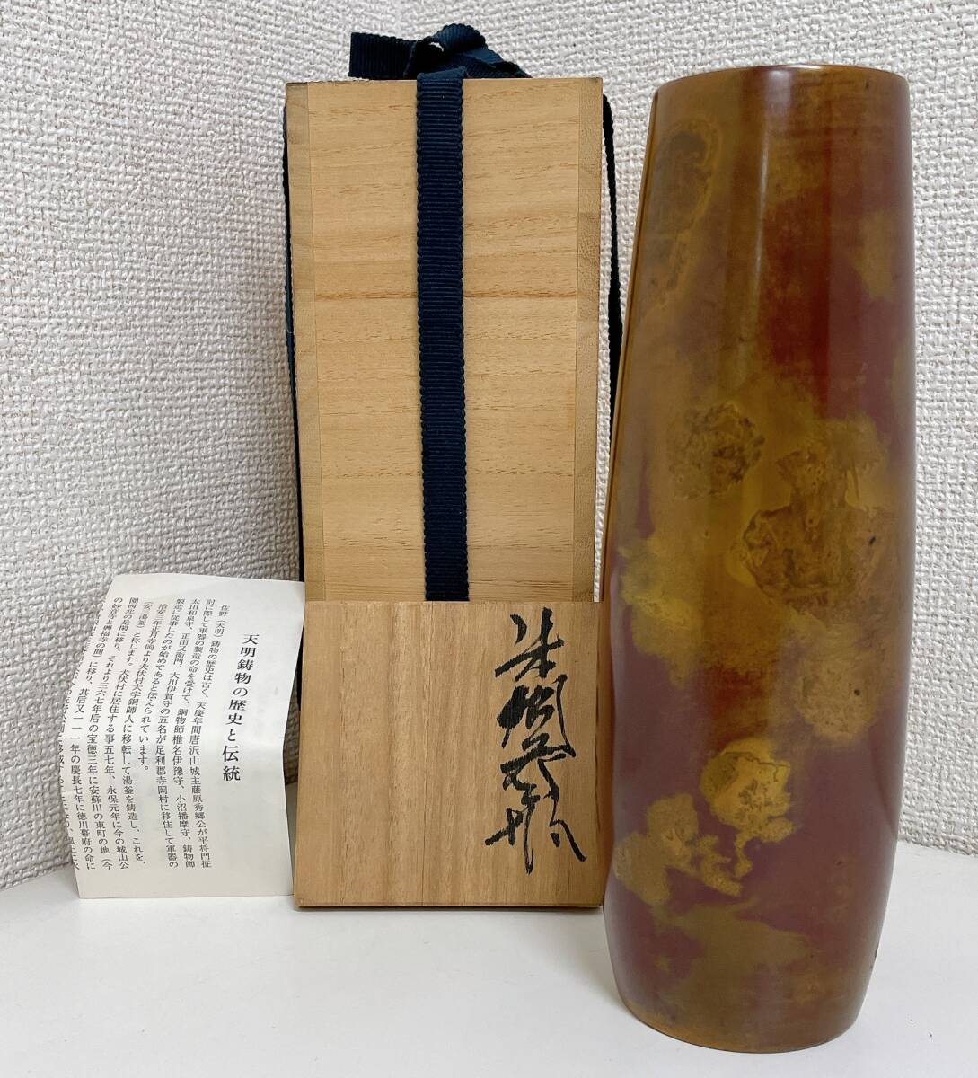 - 【天明鋳物師 栗崎二夫 朱銅花瓶 茶道具 】共箱付き/花器/インテリア/銅製/A76-046