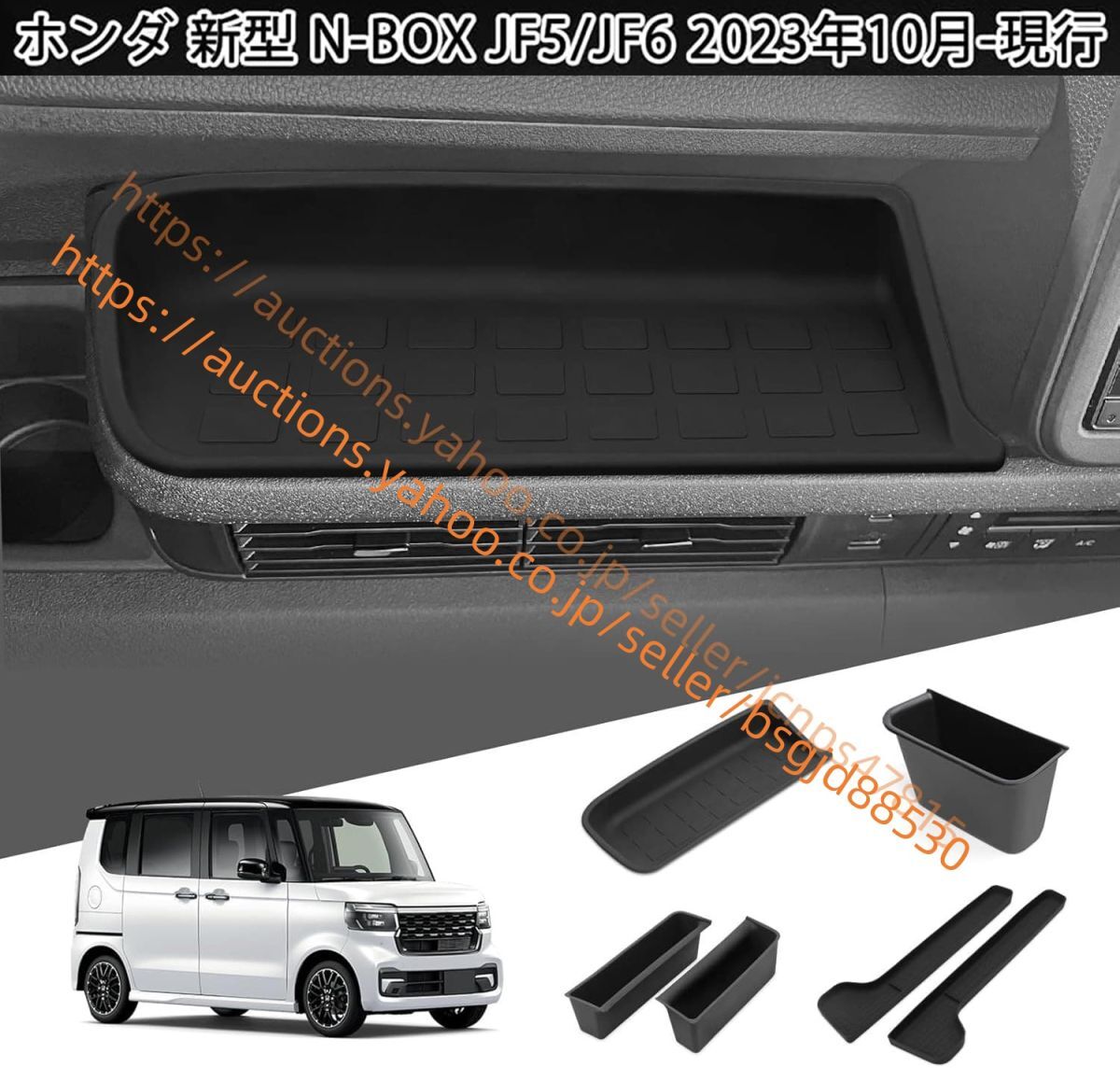 > ホンダ N-BOX 3代目 JF5 JF6型 専用 センターコンソール下の収納ボック+助手席ドレスアップ+ドア収納ボックスマット car-475