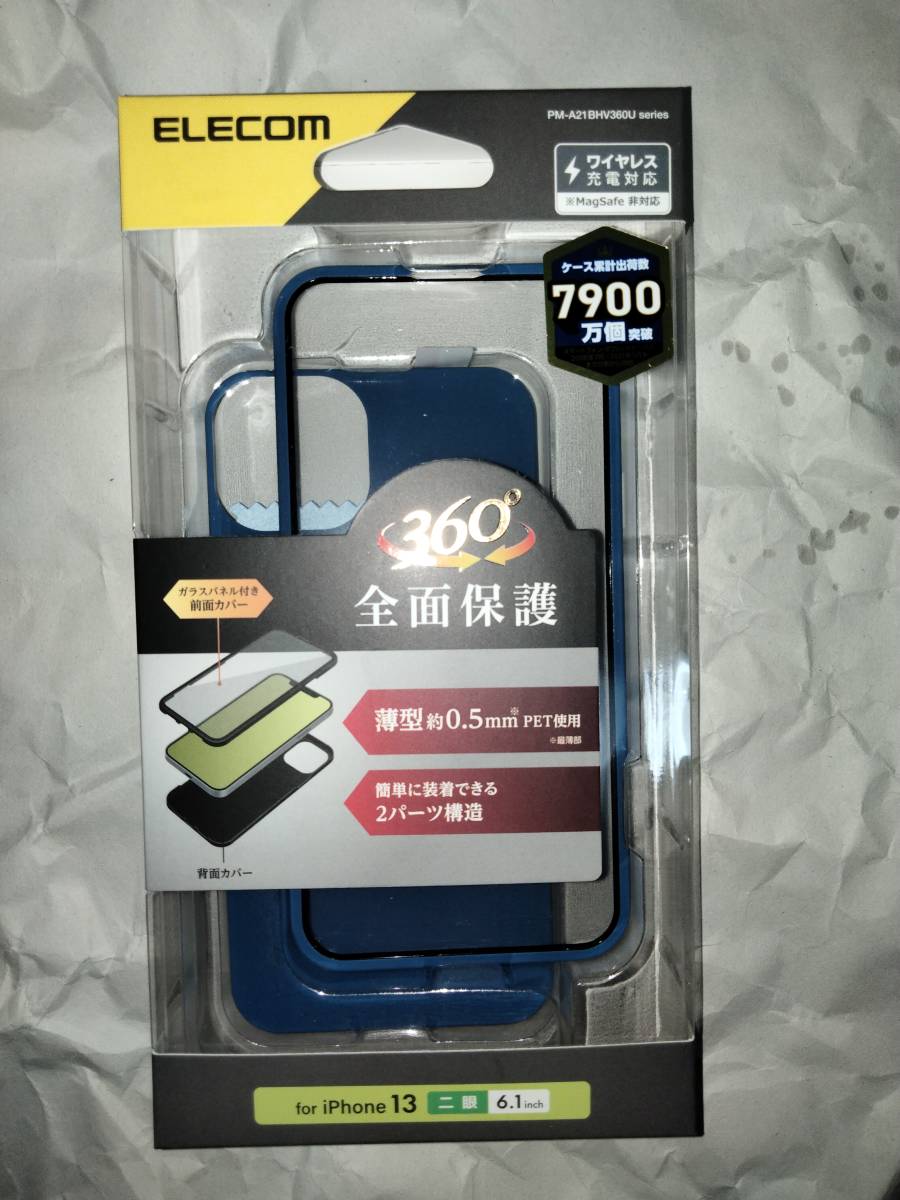 - ELECOM iPhone 13 iPhone 14 ハイブリッドケース 360度保護 薄型 ブルー 前面の強化ガラスと背面側面のPETで端末360度全面保護 定形外290~