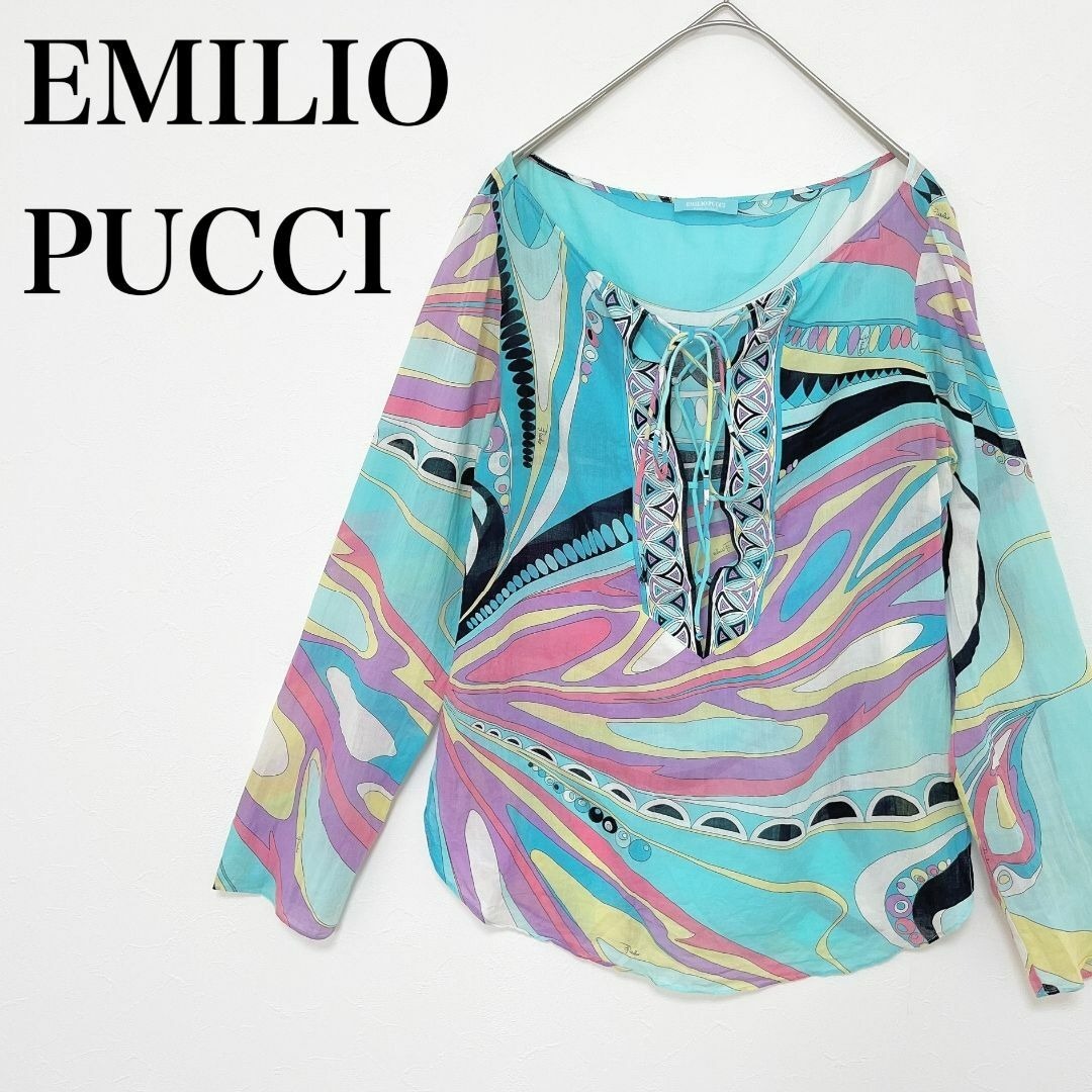 - ◇ EMILIO PUCCI エミリオプッチ トップス 長袖 総柄 サイズ 34 マルチカラー イタリア製 綿 コットン レディース