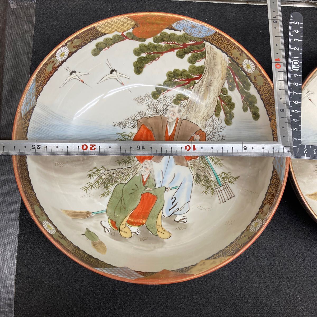 - 九谷製 色絵 高砂絵 大鉢二客組(大)約27.5センチ (中)約24センチ アンテーク