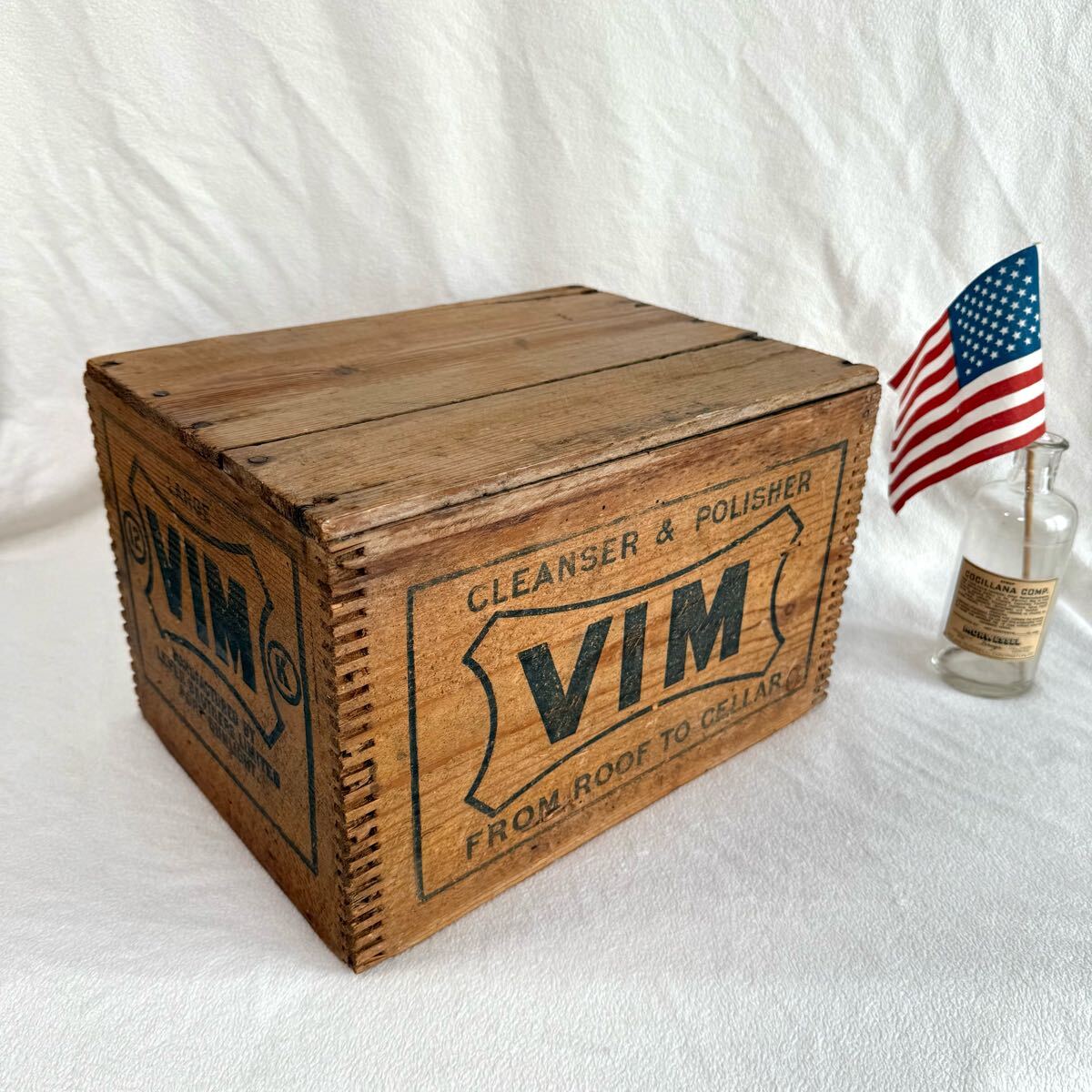 - 【良品・雰囲気抜群】ヴィンテージ ウッドボックス 木箱 VIM USA製 アメリカ製 米国 アンティーク家具 雑貨 ビンテージ アンテリア レトロ