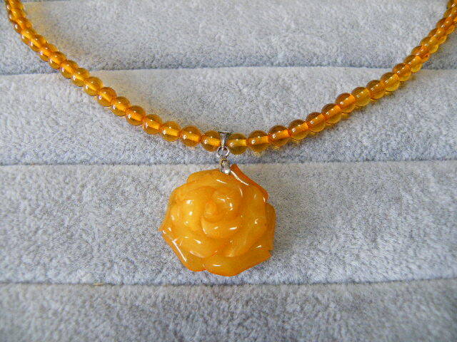 - 6002.アンバ― 琥珀 バラ 薔薇 ネックレス 未使用 在庫処分