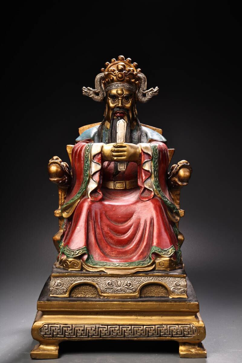 - 【超珍館蔵】銅製 描金 彩繪 廣濟龍王像 仏像 宗教 仏教古美術 供養品 古賞物 古董品 古美術品 時代物 旧家蔵出 稀少珍蔵品