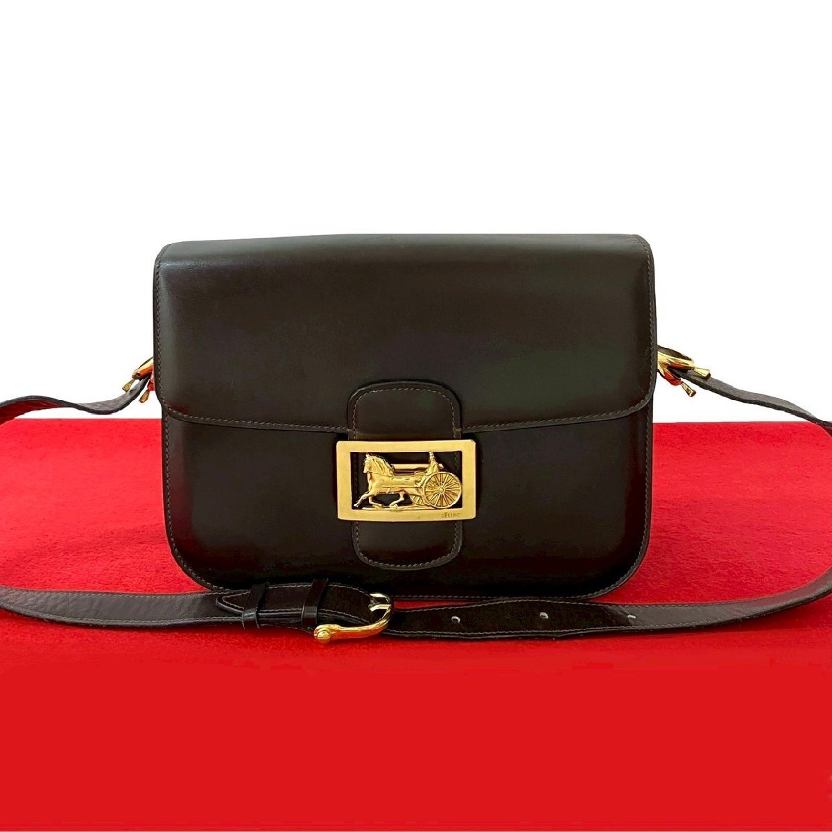 > 極 美品 CELINE セリーヌ ヴィンテージ ロゴ 馬車金具 レザー 本革 ミニ ショルダーバッグ ポシェット サコッシュ ブラウン 茶 30116