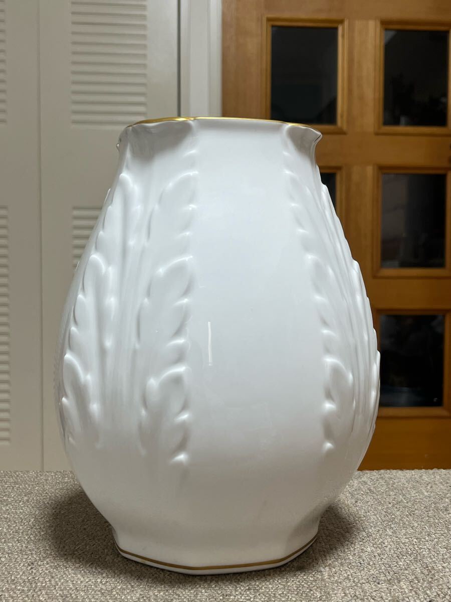 - OKURA 大倉陶園 浮き彫り葉文 花瓶飾り壺 花器 白磁 金縁