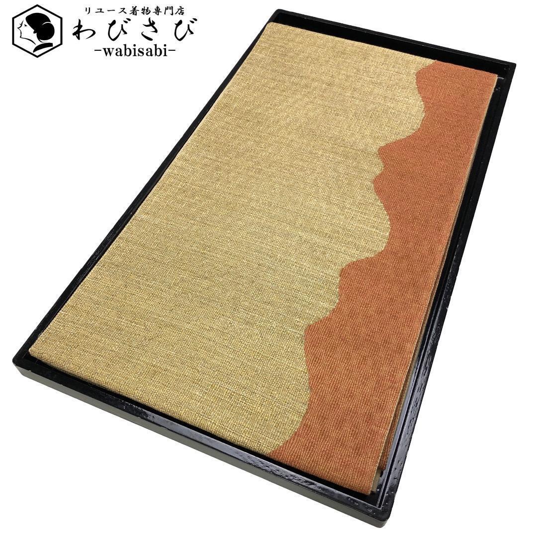 - 袋帯 縦柄曲線模様 金糸 梨子色 O-5205 着物 きもの kimono 和服 和装 中古 リサイクル着物 【送料無料】