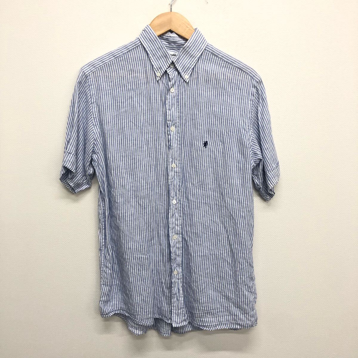 > 【Gymphlex】ジムフレックス★半袖シャツ サイズM リネン ブルー ストライプ gy-b0244 ボタンダウン シャツ 06