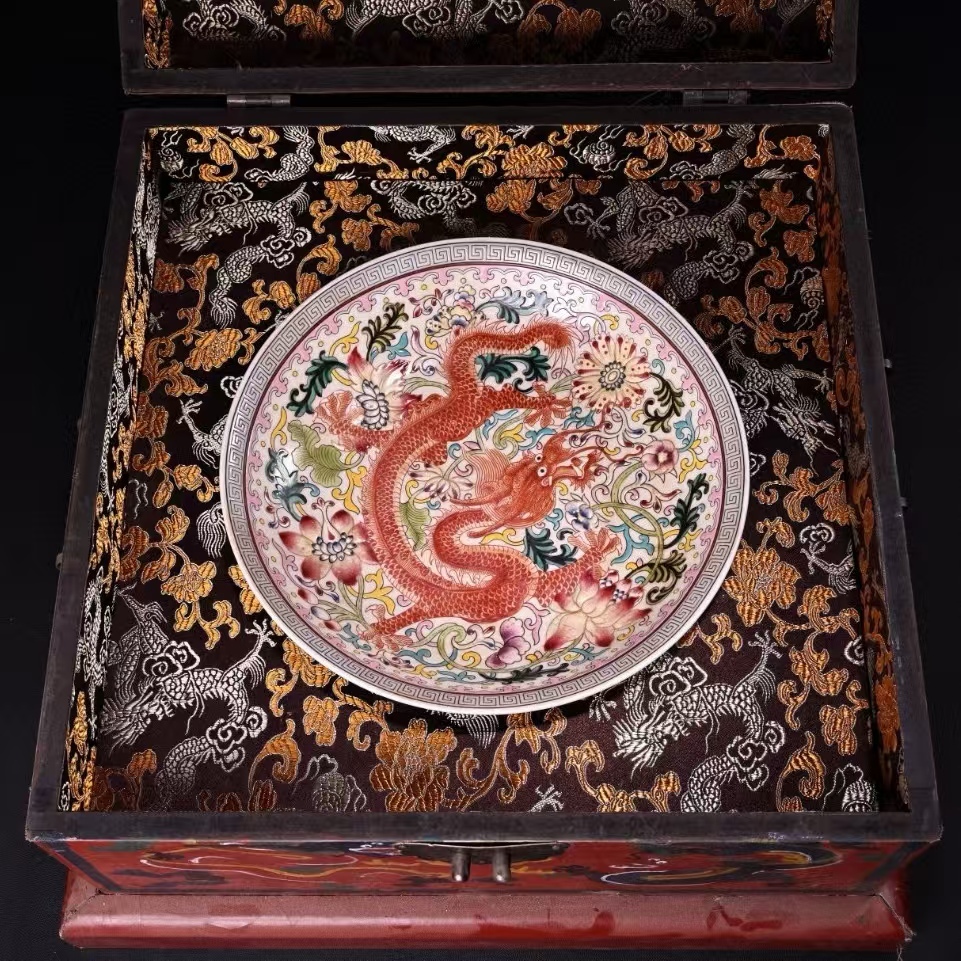- 皿 磁器 秘藏 清代 雍正年制 宮廷御蔵粉彩色龍紋・皿 酒器 茶器 唐磁 染付 陶磁器 收蔵品 古美味 時代物 古美術 古置物 希少珍品 中國文玩