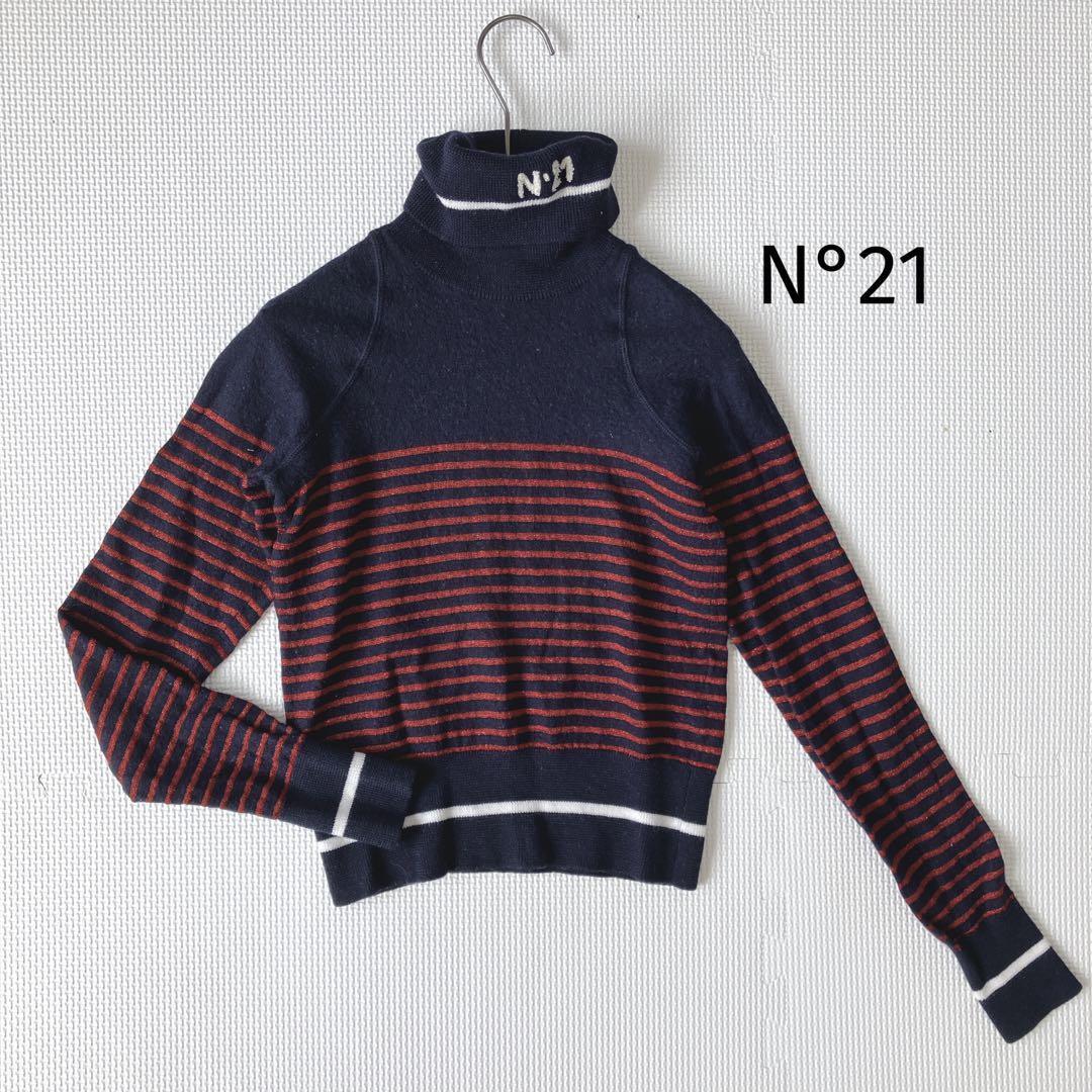 - ヌメロ ヴェントゥーノ N°21 ニット 長袖 ラメボーダー タートル