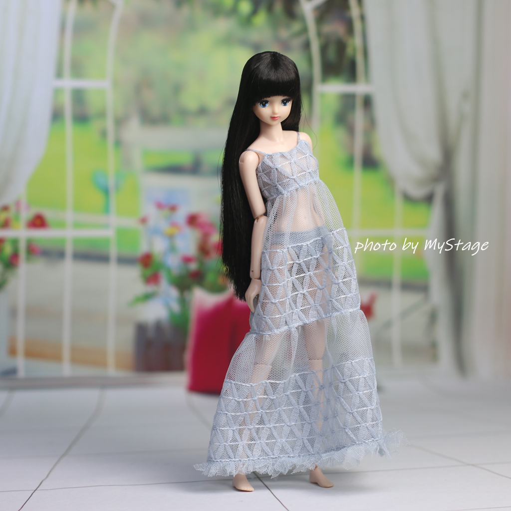- 人形服msdr-25-4871 水色ロングチュールキャミワンピース(ランジェリー)、ショーツ(momoko,ジェニー)