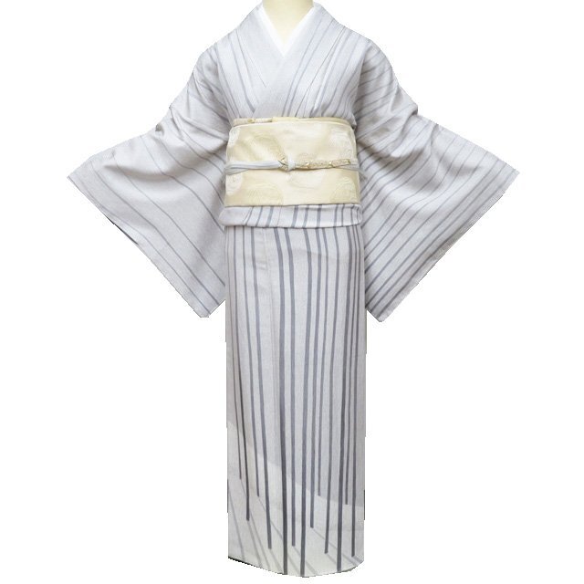 > 訪問着 着物 未使用 正絹 袷 カジュアル 抽象画 縞模様 絹鼠色 鼠色 身丈168cm 裄68cm L トール きもの北條 A1215-7