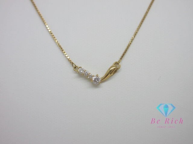 - K18 YG ダイヤモンド 0.13ct 付 デザイン ネックレス ペンダント 18金 750 イエロー ゴールド ジュエリー 【中古】【送料無料】 th12925