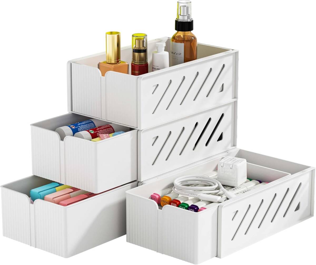 - (4個セット) 卓上 収納引き出し 小物入れ 積み重ね可能 文房具 コスメ 収納 ボックス ホワイト デスクオーガナイザー DIY ボックス 収納
