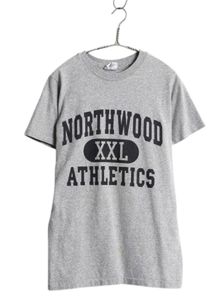 - 90s USA製 3段 カレッジ プリント 半袖 Tシャツ メンズ レディース S / オールド シングルステッチ カットソー ヘビーウェイト シンプル 灰