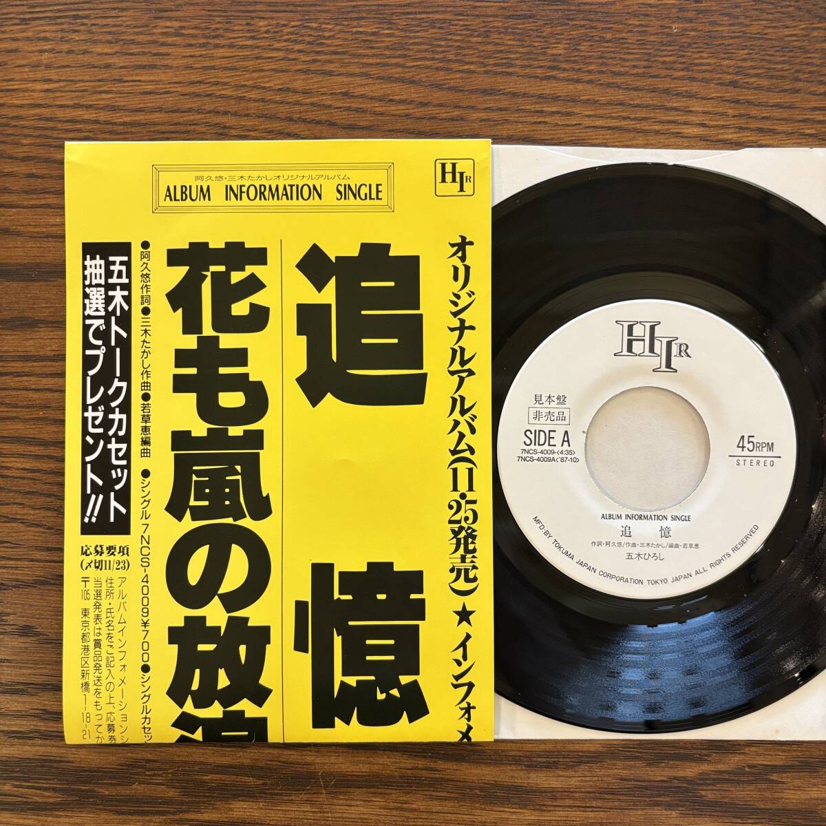 - 【稀少・見本盤EP】五木ひろし - 追憶 [7NCS-4009] HIR 阿久悠 三木たかし 若草恵 非売品 プロモ 白ラベル シングル 昭和 歌謡曲