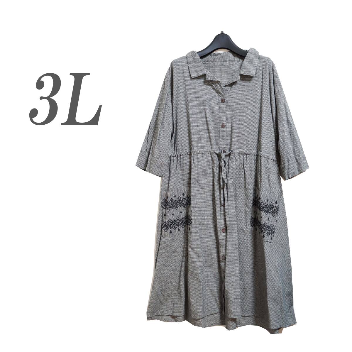 - ●新品/ワンピース/3L/グレー系/刺繍/シャツワンピース/レディース●x0027