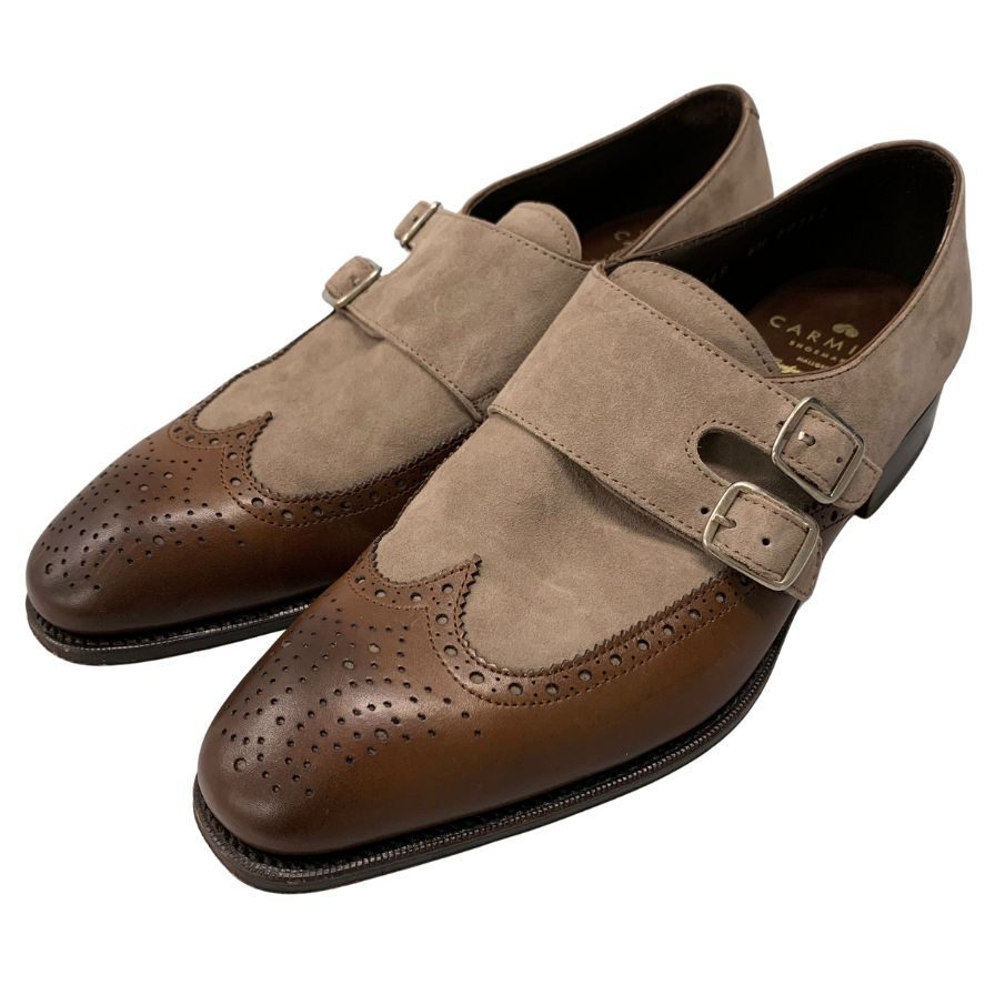 - カルミナ レザーシューズ 80342 ダブルモンク スエード コンビ ブラウン サイズ6.5 メンズ CARMINA 約24.5cm【AFC34】