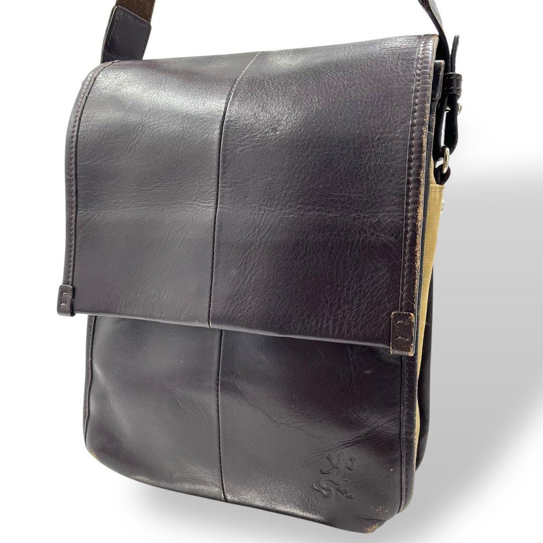 - agnes b アニエスベー ショルダーバッグ レザー 布 ブラウン ベージュ