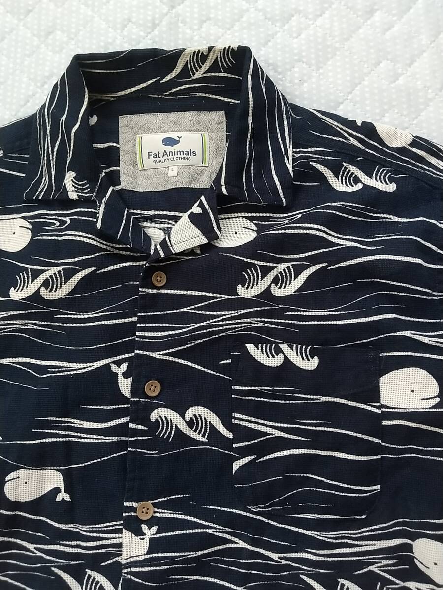 - メンズ 半袖 シャツ ネイビー クジラ L クールビズ クロネコ レターパック ワンコイン