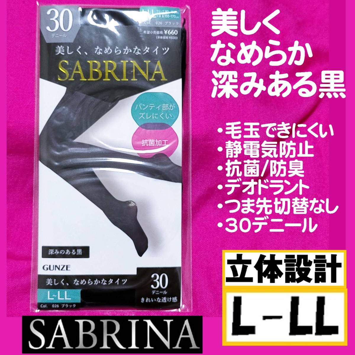 - 匿名★同梱歓迎【Z】★SABRINA 美しく、なめらかなタイツ 深みのある黒 30デニール 立体設計 ストッキング パンスト L-LL GUNZE 黒
