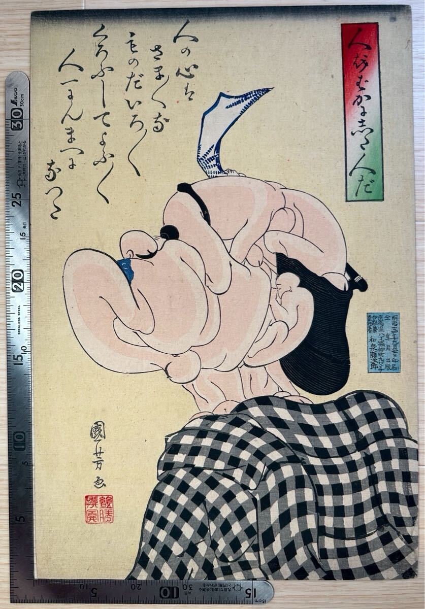 > 【真作】歌川国芳 人をばかにした人だ 和泉勝次郎版 明治期 浮世絵 風俗画 戯画 木版画 ukiyo-e 中国唐物唐本 古筆古文書和本 #169