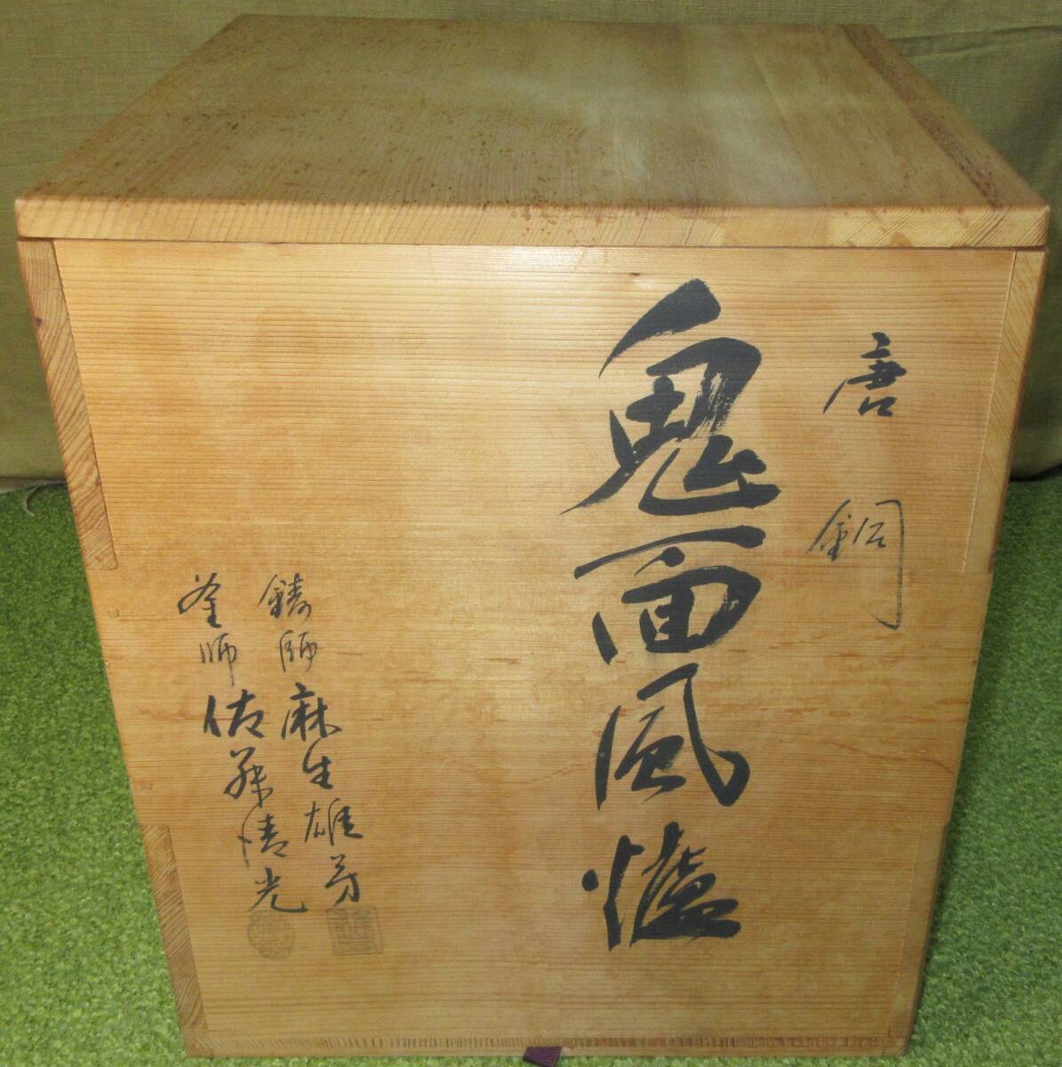 - 唐銅 鬼面風炉 お茶道具 茶器 風炉釜 丸釜 鉄釜 銅窯 窯師 佐藤清光 鋳師 麻生雄芳 灰入り 未使用 工芸品 共箱入り