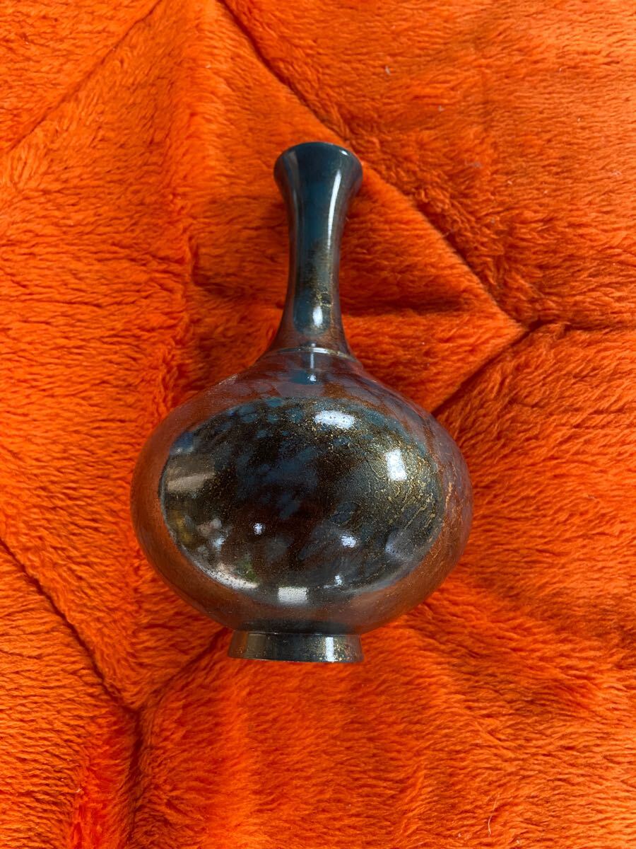 - 高岡銅器 峰雲作 ブロンズ 青銅花瓶 錆銅 花入 鶴首花瓶 古美術 花器 花瓶