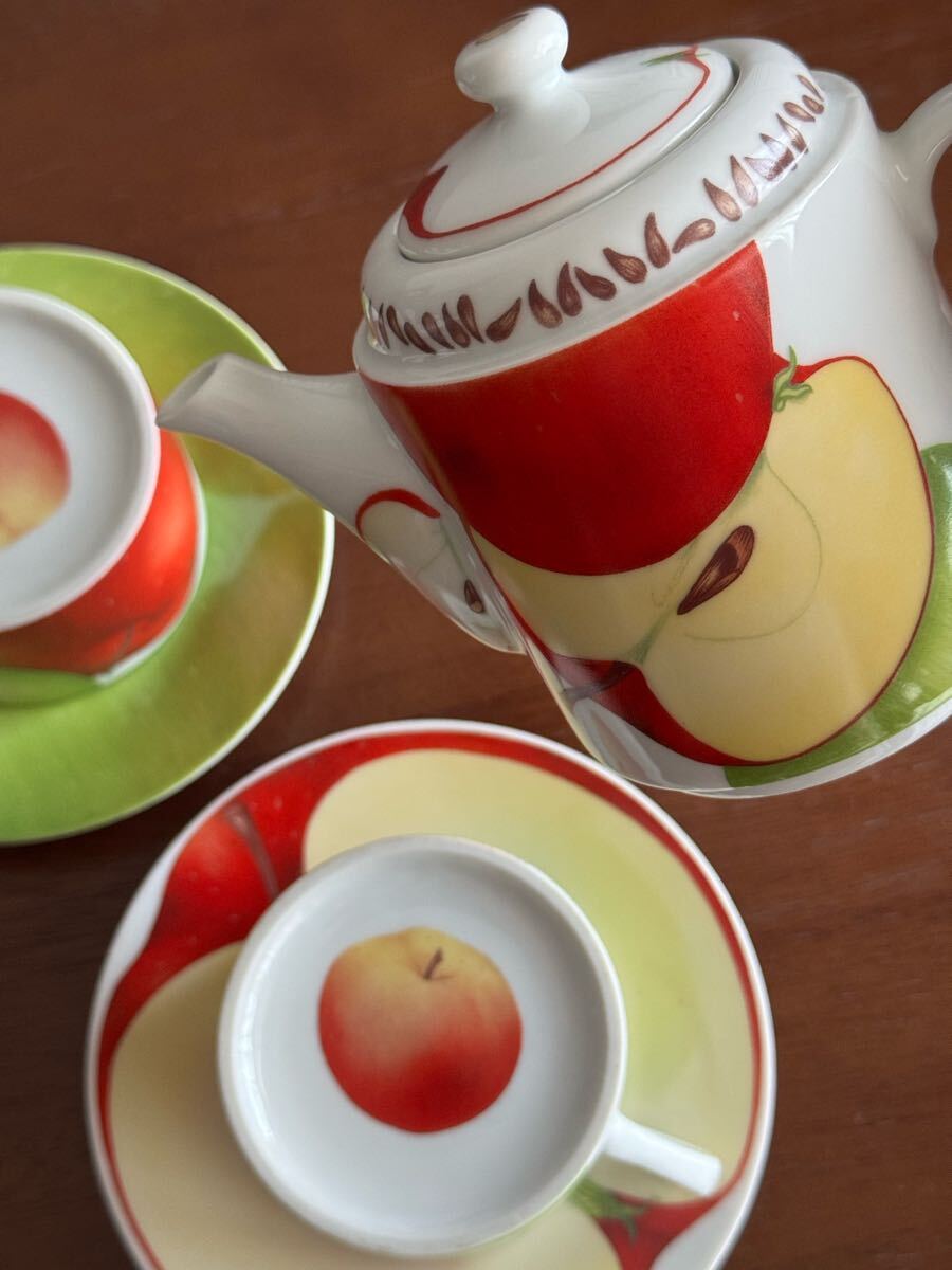 > イタリア製 ポット、カップ&ソーサー各2 ケーキ皿2枚 ソーサー カップ コーヒーカップ