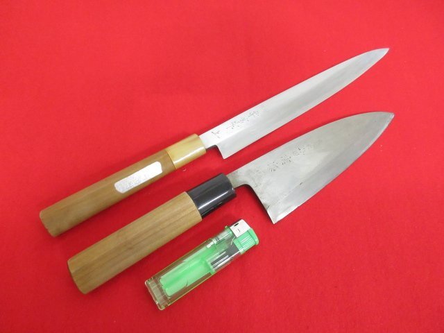 - P165■京刃物 常信 / 出刃包丁 150mm / 刺身包丁 195mm 銀三 // 2丁セット // 和包丁 打刃物