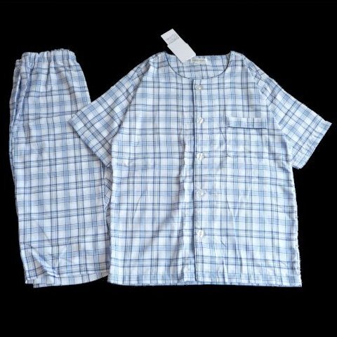 - 新品 メンズ パジャマ M 半袖 7分丈ズボン Smith & stricker DRY 介護 大きいボタン チェック 紳士 寝巻 ルームウェア ナイトウェア