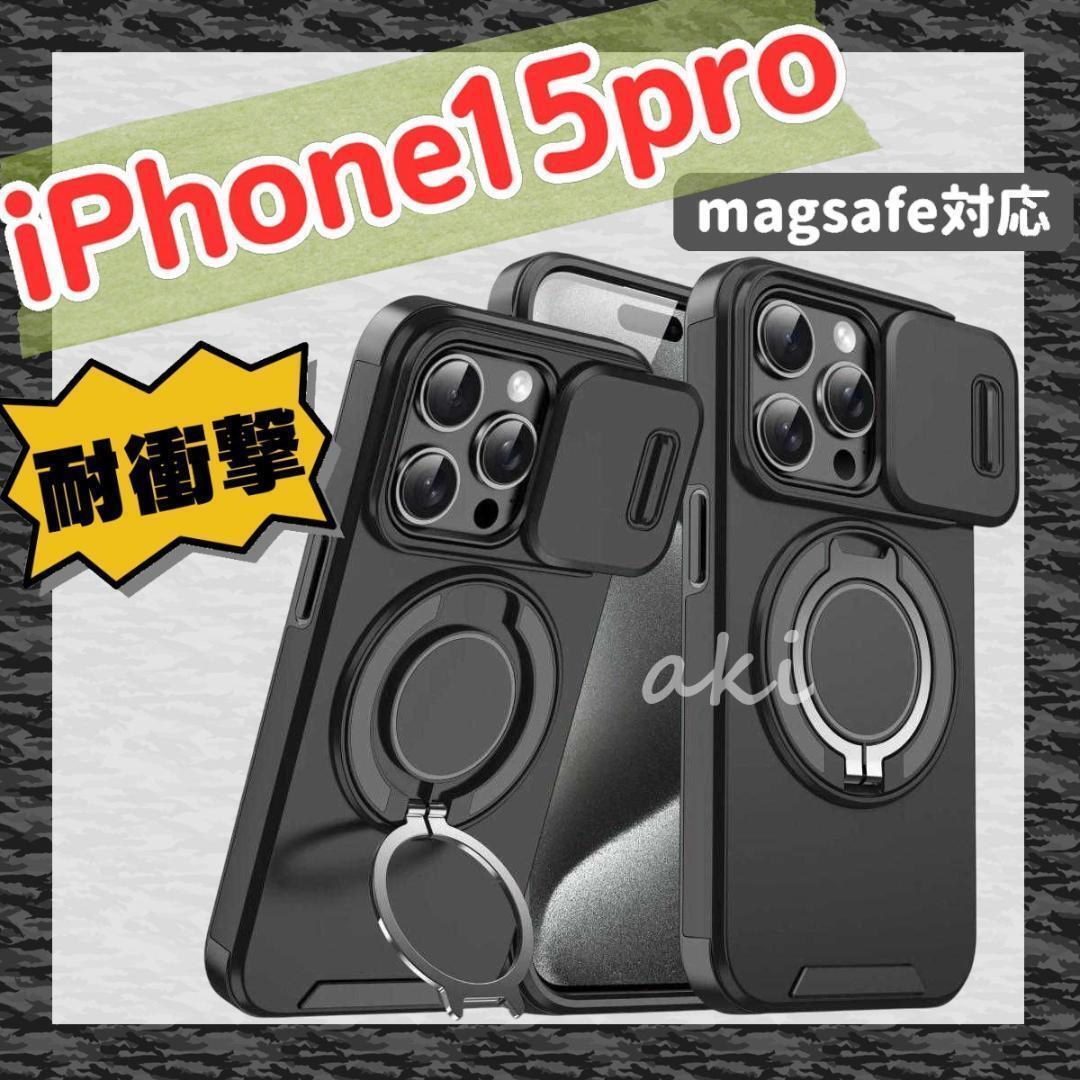 > iPhone15pro ケース 耐衝撃 スライドレンズ保護 米軍MIL規格 ブラック