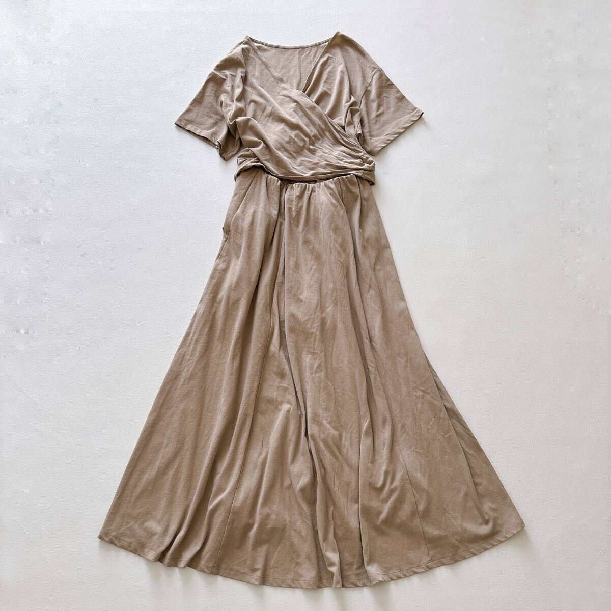 - ミラオーウェン 半そで ロング ワンピース バック カシュクール 2way リボン ベージュ サイズ0
