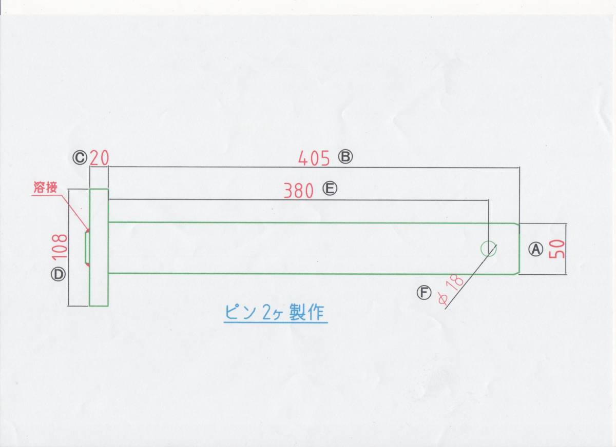 - NO1570 Φ50用 溶接ツバ下405mm バケットピン 2本1セット