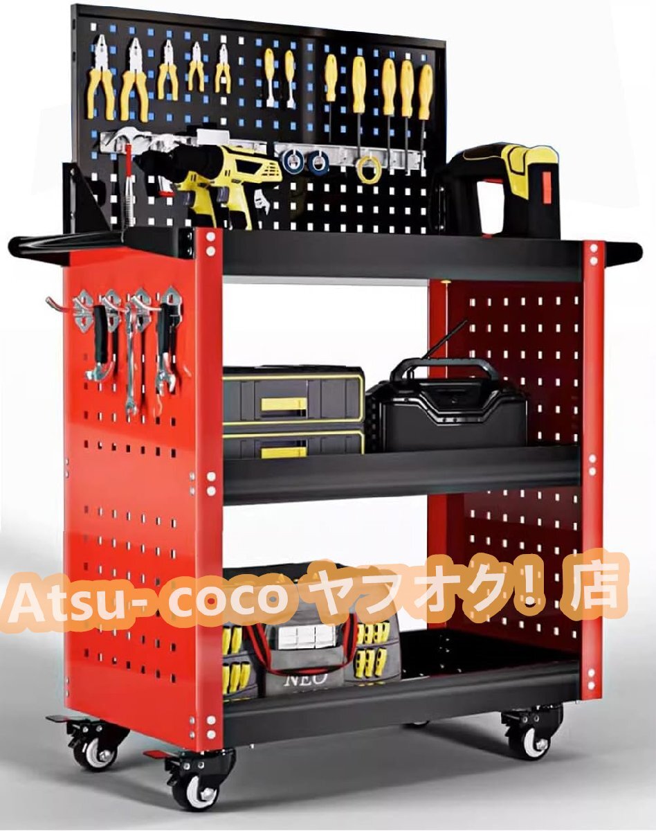- 工具カートツールワゴン工具台車ツールカート360°回転 キャスター付き3段メッシュパネル付きDIY工具耐荷重200kg長さ65×奥行36×高さ103cm
