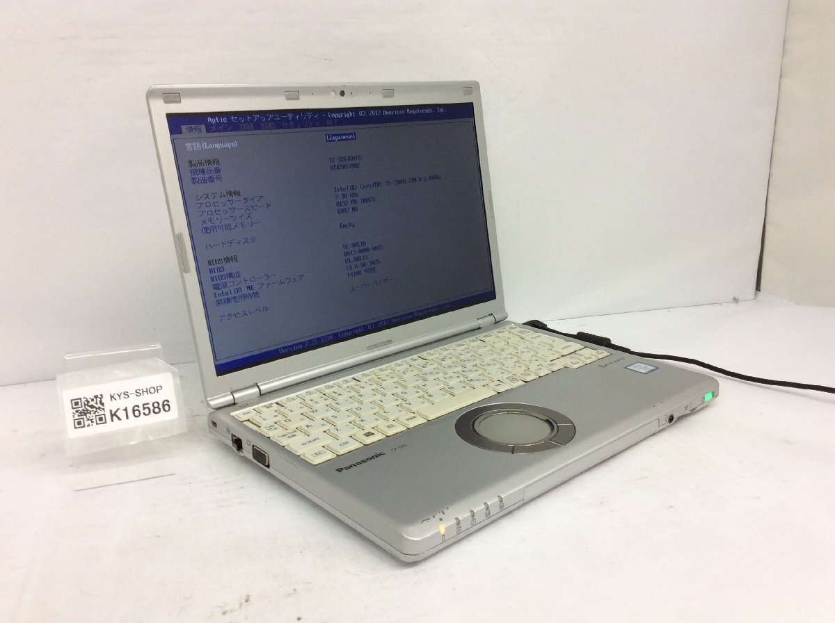 > ジャンク/ Panasonic CF-SZ6RDYVS Intel Core i5-7300U メモリ8.19GB ストレージ無し 【K16586】