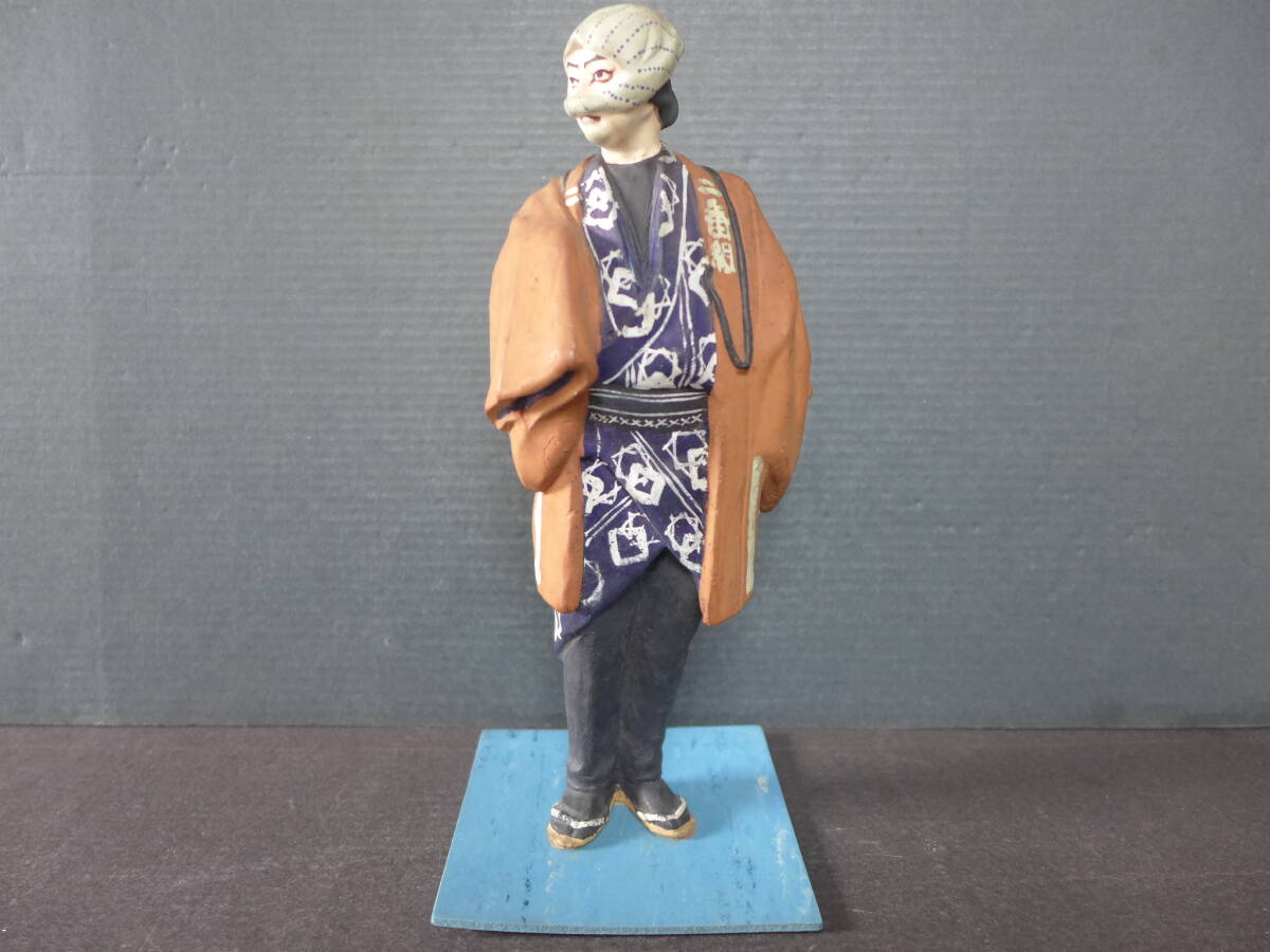 - ★ 時代物 二番組 丸め 歌舞伎役者人形 彩色陶器置物 マルエス印 販促品? レトロ アンティーク ★