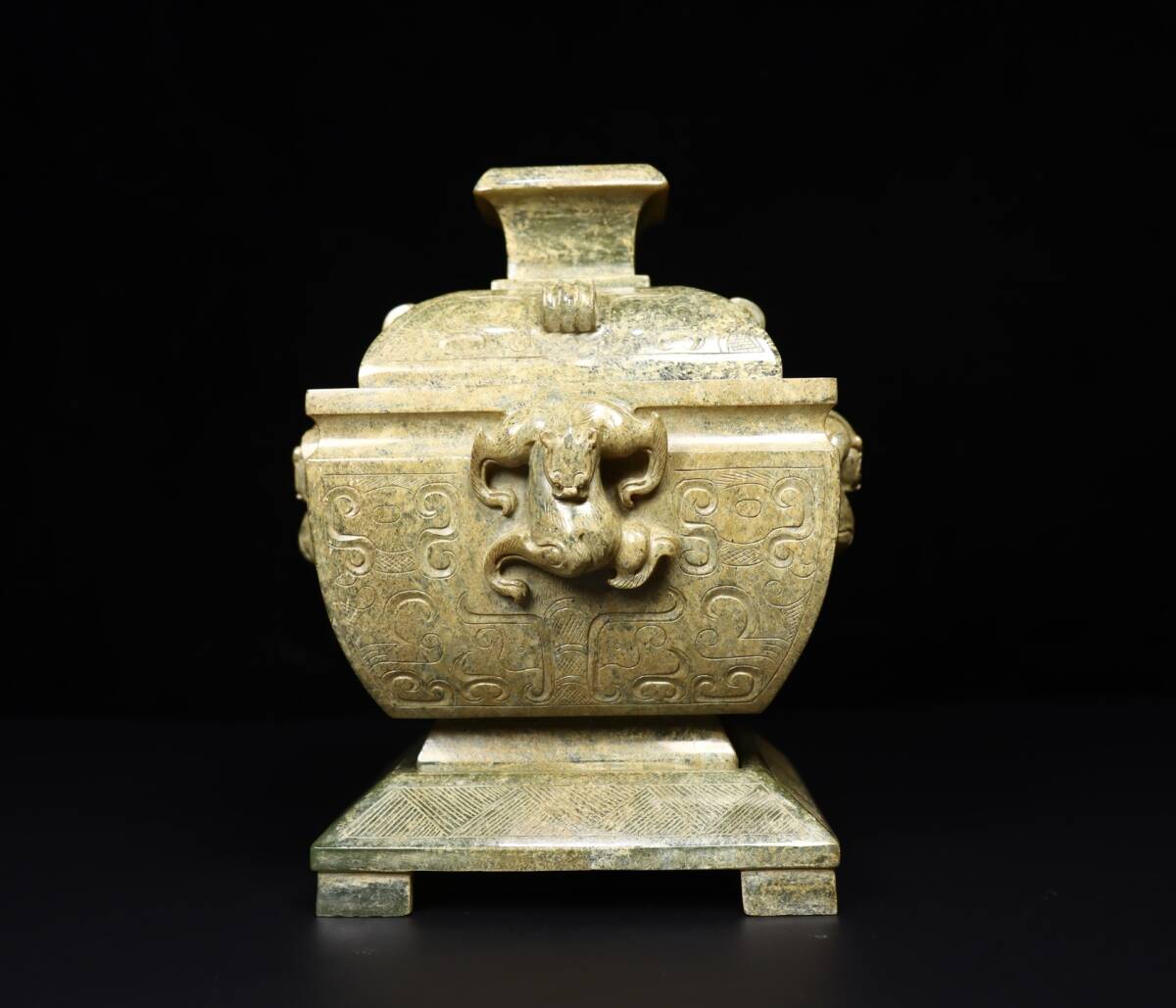- 6+GV3364「東洋美術」 人間国宝 和田玉 極細工 古置物 中国古美術 【和田玉炉】 旧物 珍品 収蔵価値が高い