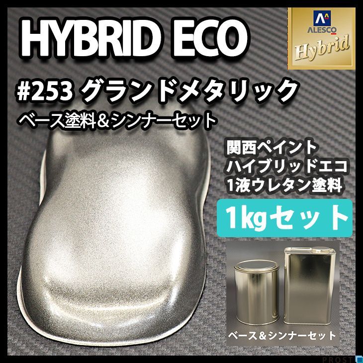 - 関西ペイント ハイブリッド エコ ♯253 グランド メタリック 超極粗目 1kgセット(シンナー付)/ 1液 ウレタン 塗料 シルバー Z25
