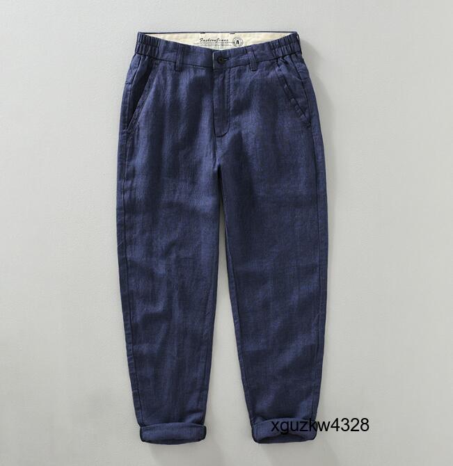 - リネンパンツ 麻100% メンズパンツ 麻パンツ 春夏 ロングパンツ 無地 チノパンツ イージーパンツ 清涼感 薄手 ベージュ ネイビー M~3XL