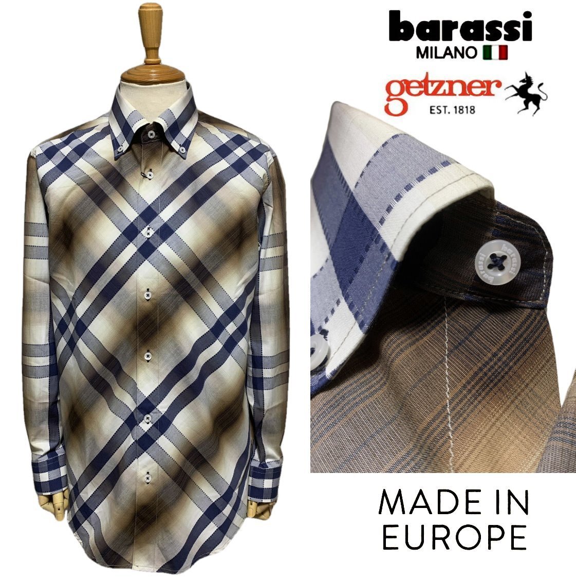 > barassi バラシ オンブレー バイアスウインドペン 長袖ボタンダウンシャツ ブラウン size46 M GETZNER ゲッツナー社製高級欧州生地