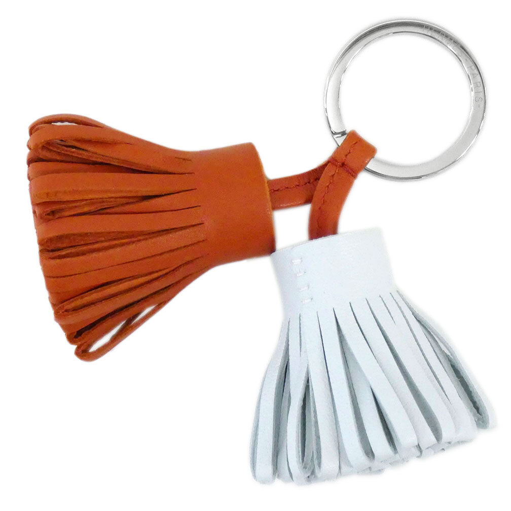 > 未使用 エルメス バッグチャーム HERMES H077895CJBY カルメン ウノ ドス カーネリアン ブルーブリュム キーホルダー オレンジ 水色