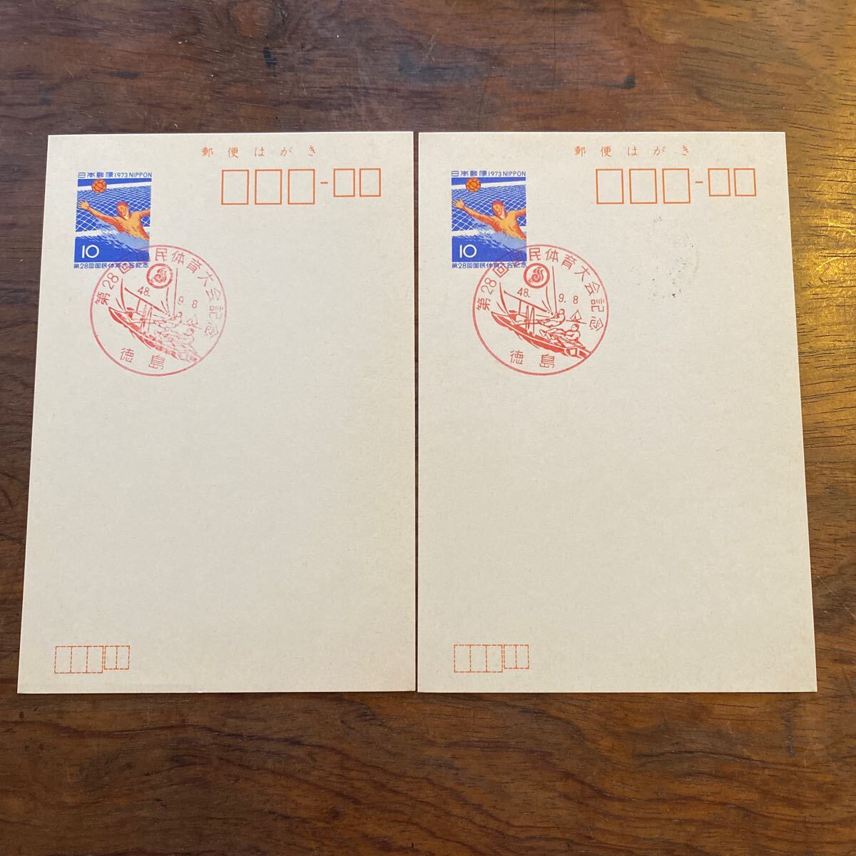 - [猫] 初日風景印 郵便はがき 二枚 第28回国民体育大会記念