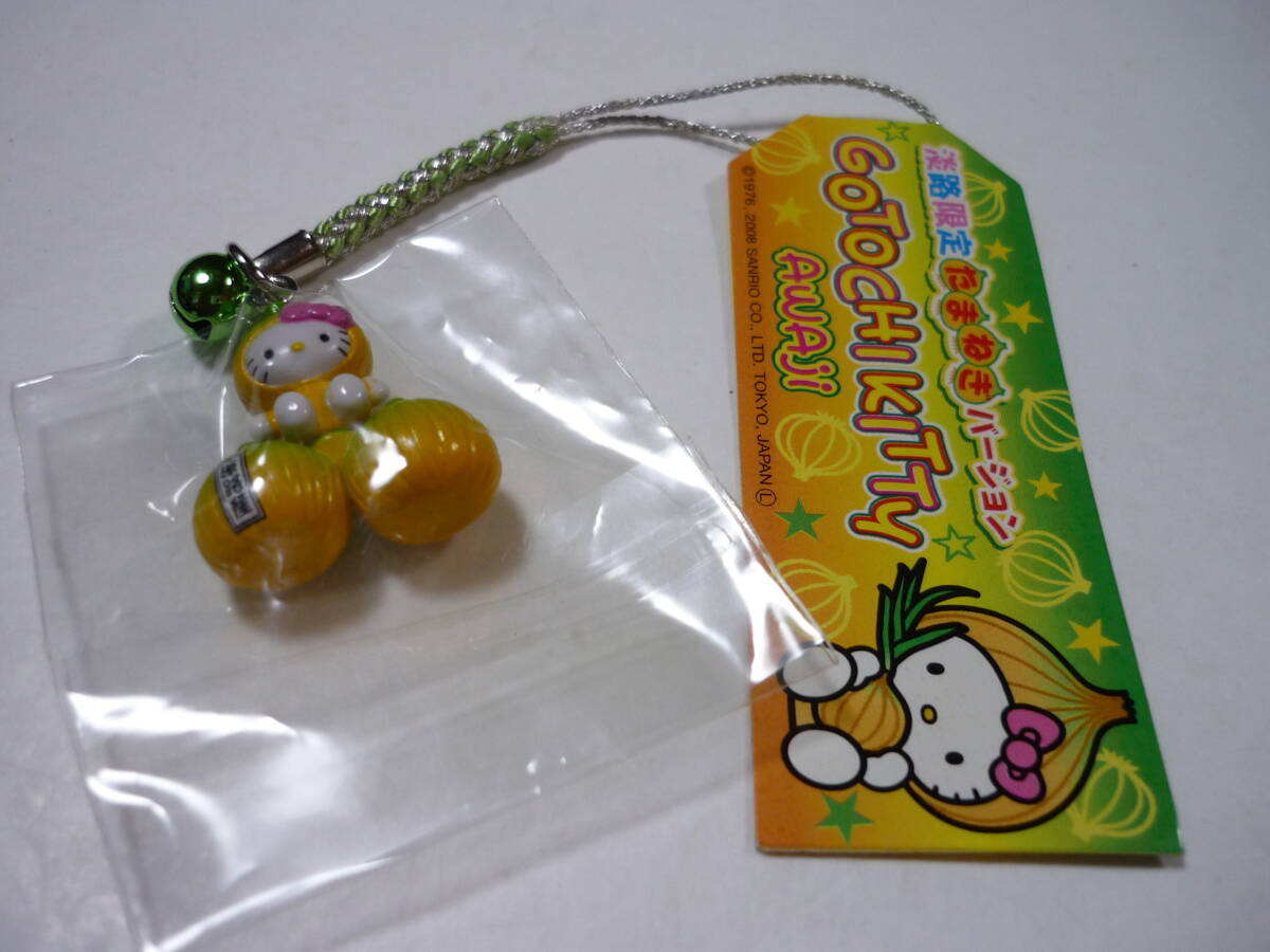 - [管00]【送料無料】ストラップ キティ(たまねぎバージョン) 根付け(シルバー×グリーン) 「ハローキティ」 淡路限定 ご当地キティ